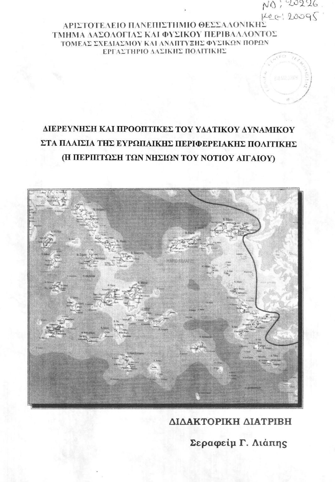Διερεύνηση και προοπτικές του υδατικού δυναμκού στα πλαίσια της ευρωπαϊκής περιφερειακής πολιτικής: η περίπτωση των νησιών του Νοτίου Αιγαίου