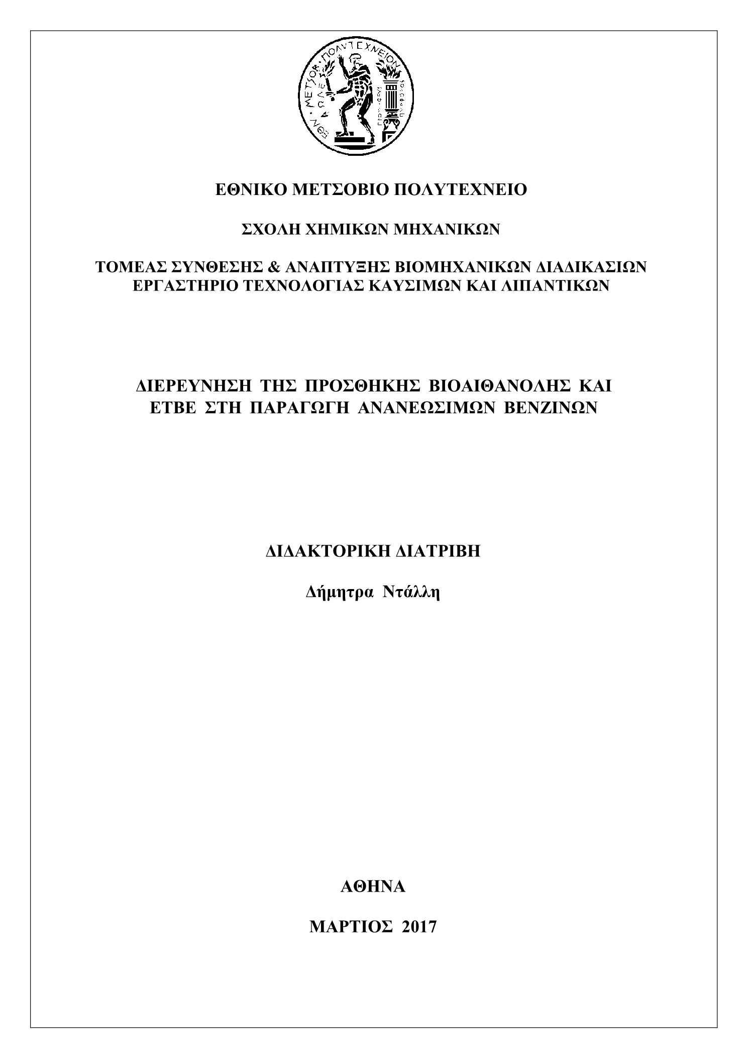 Διερεύνηση της προσθήκης βιοαιθανόλης και ΕΤΒΕ στην παραγωγή ανανεώσιμων βενζινών