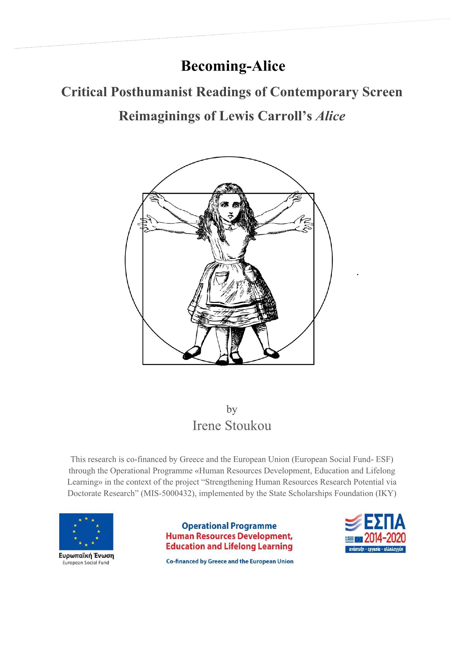My dissertation explores the rich tapestry of Lewis Carroll’s Alice narratives and their contemporary screen reimaginings, to offer fresh insights into the posthuman predicament. The examination of the six selected reimaginings, spanning from 1966 to 2016, traces the convergence of post-humanism and post-anthropocentrism, as well as the challenges and sites of resistance that arise in relation to the context of each work. This study has harnessed the potent tools of posthuman critical thought to decode and interpret works influenced by the evolving notions of anthropos and the human, taking figurations and processes of becoming as departure points to analyse our posthuman condition. Notably, the profound theoretical framework of Rosi Braidotti and her work on the posthuman have been instrumental in shaping this exploration. Reflective of the posthuman predicament, my research is essentially interdisciplinary, always in dialogue with literary and cultural studies, film studies, feminist ...