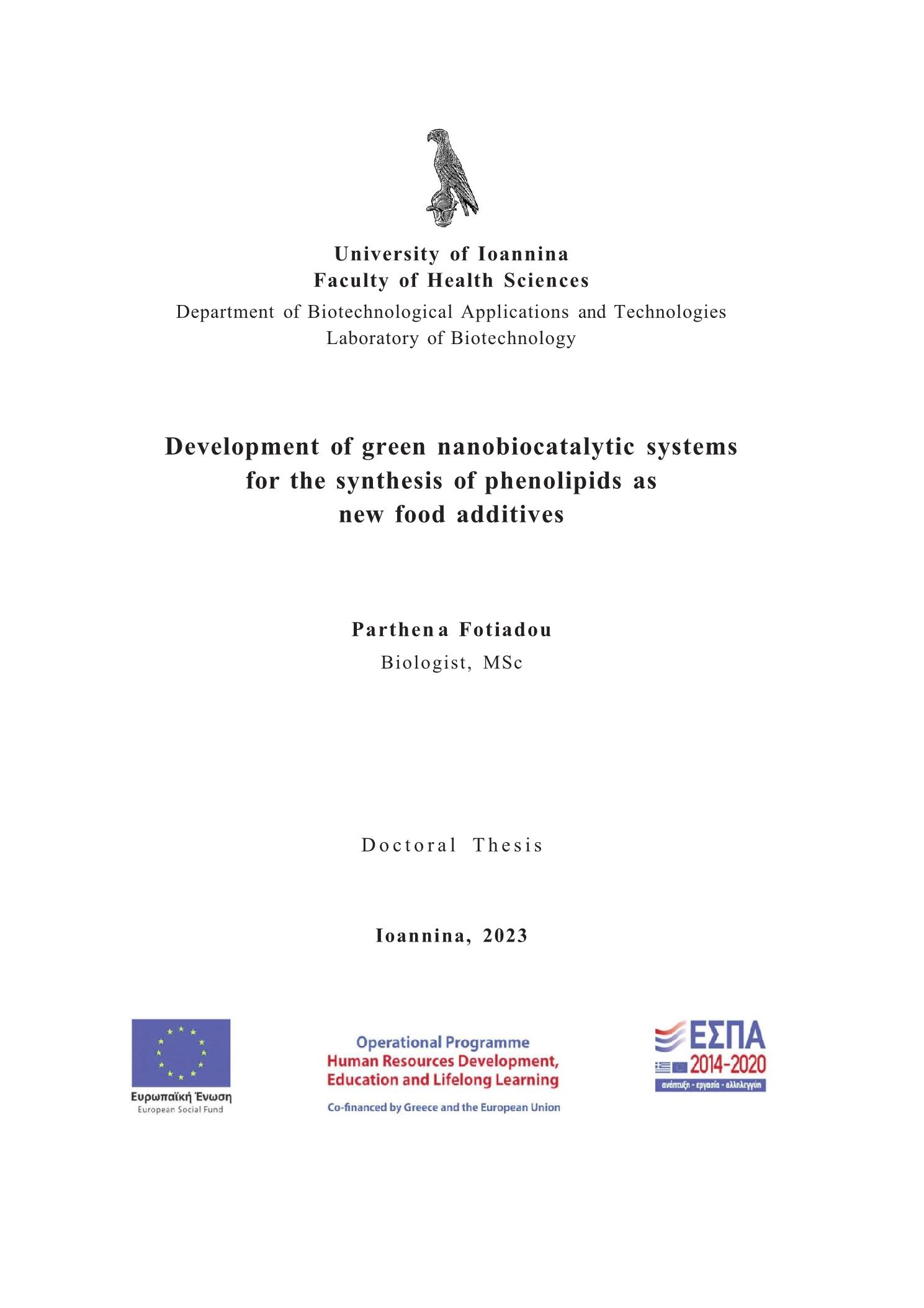 Ανάπτυξη πράσινων νανοβιοκαταλυτικών συστημάτων για τη σύνθεση λιπόφιλων παραγώγων φυσικών αντιοξειδωτικών ως νέα πρόσθετα τροφίμων