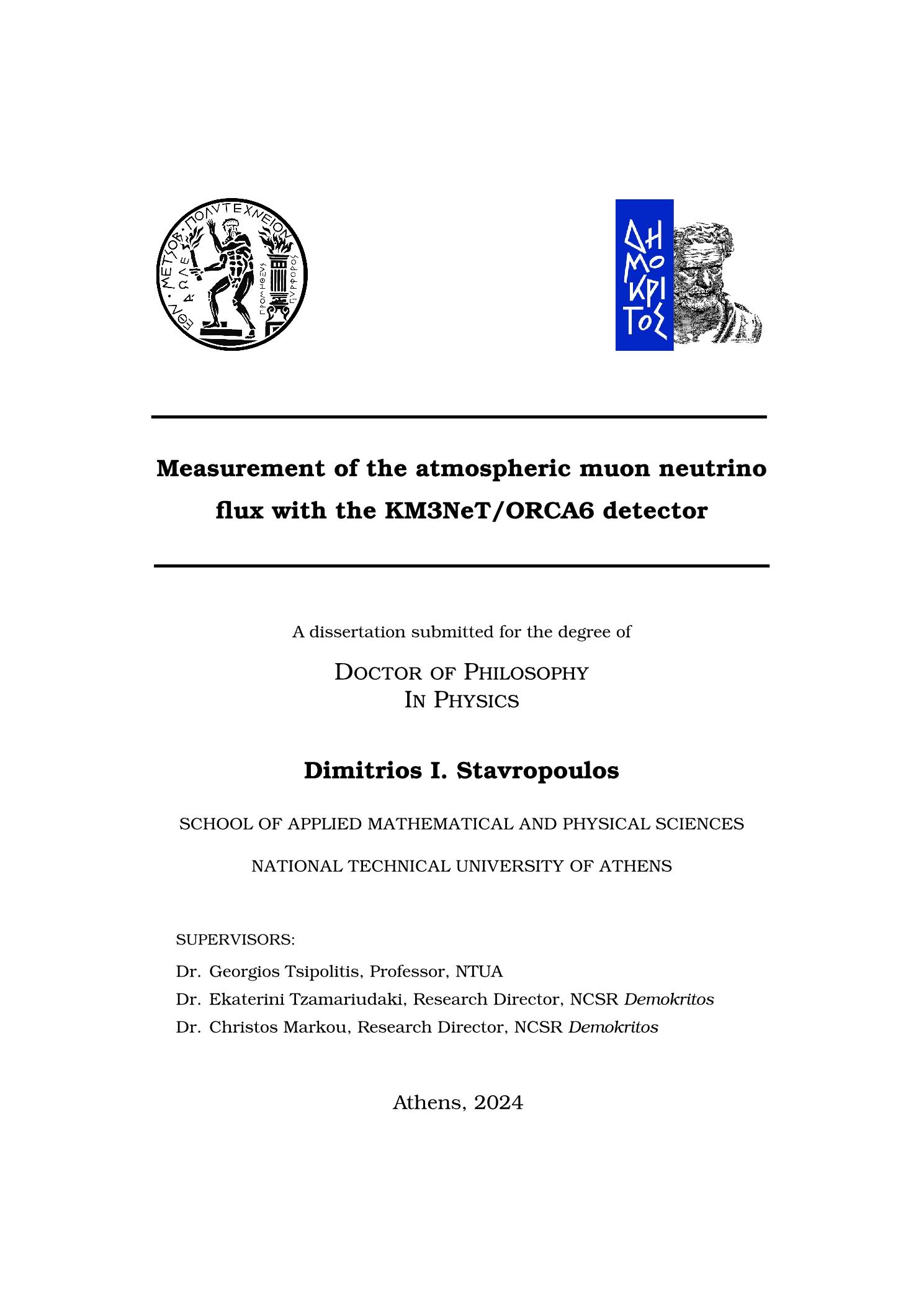 Η ϱοή των ατµοσφαιρικών νετϱίνων σχετίζεται µε διάφορους τοµείς της σύγχϱονης έρευνας. Τα ατµοσφαιρικά νετϱίνα προέρχονται από τις κοσµικές ακτίνες, η πϱοέλευση των οποίων αποτελεί ανοιχτό εϱώτηµα. Παράγονται στις αλληλεπιδράσεις των κοσµικών ακτίνων µε τους πυϱήνες στην ατµόσφαιρα, µε τις ιδιότητες των αδϱονικών καναλιών διάσπασης να χρήζουν πεϱαιτέϱω πειραµατικής πληροφορίας. Το χαµηλότερο µέϱος του ενεργειακού τους εύϱους τους είναι κατάλληλο για τη µελέτη των ταλαντώσεων των νετϱίνων, και για να ελεγχϑούν διάφορες ϑεωρίες επέκτασης του Καθιερωµένου Προτύπου. Τέλος, ο ακϱιϐής προσδιορισµός της ϱοής των ατµοσϕαιρικών νετϱίνων, είναι εξαιρετικά σηµαντικός για τη µελέτη νετϱίνων από αστροϕυσικές πηγές και τη διεϱεύνηση ανεξερεύνητων ϕαινοµένων του σύµπαντος.Παϱά την πληθώρα των ερευνητικών ϑεµάτων που σχετίζονται µε τα ατµοσφαιρικά νετϱίνα, υπάρχει περιορισµένη πειραµατική πληροφορία για τη ϱοή τους για ενέϱγειες µικϱότεϱες από 100 GeV. Σκοπός αυτής της εργασίας είναι να αποδείξει ότι ο ανιχνευτής KM3NeT/ORCA είναι σε ϑέση να πραγµατοποιήσει µέτϱηση της ϱοής των ατµοσφαιρικών νετϱίνων ακόµη και στα πϱώτα στάδια της κατασκευής του, παρέχον-τας τη µόνη υπάρχουσα σύγχϱονη µέτϱηση της ϱοής των ατµοσφαιρικών ν µ + ν̄ µ µετά το Super-Kamiokande.Αυτή η διατϱιϐή αποτελείται από τϱία µέϱη. Στο πϱώτο µέϱος, το Κεϕάλαιο 1 πεϱιλαµϐάνει µια σύντοµη αναϕοϱά στις ϐασικές έννοιες της ϕυσικής των νετϱίνων, ενώ στο Κεϕάλαιο 2 πεϱιγϱάϕεται η ϱοή των ατµοσϕαιϱικών νετϱίνων. Στο δεύτεϱο µέϱος, οι ανιχνευτές ARCA και ORCA του KM3NeT εισάγονται στο Κεϕάλαιο 3, µαζί µε µια πεϱιγϱαϕή των κύϱιων στοιχείων του ανιχνευτή, της αϱχής ανίχνευσης καιτων διαδικασιών ϐαϑµονόµησης. Στο Κεϕάλαιο 4, πεϱιγϱάϕονται οι αλγόϱιϑµοι που χϱησιµοποιούνται για τη πϱοσοµοίωση των δεδοµένων του KM3NeT/ORCA, µαζί µε τις συνϑήκες σκανδαλισµού (trigger) του ανιχνευτή και την πϱοσοµοίωσή τους,καϑώς και οι κύϱιοι αλγόϱιϑµοι ανακατασκευής γεγονότων.Το µέϱος της ανάλυσης αποτελείται από τέσσεϱα κεφάλαια. Στο Κεφάλαιο 5, επιτυγχάνεται µια επιλογή γεγονότων νετϱίνων υψηλής καθαρότητας από τα δεδοµένα που συλλέγονται µε την ανιχνευτική διάταξη KM3NeT/ORCA6. Περιγράφεται ο ανιχνευτής ORCA6, τα δεδοµένων που συλλέχθηκαν, καθώς και η προσοµοίωση των γεγονότων. Μετά από µια περιγραφή των κϱιτηϱίων προεπιλογής των γεγονότων, παρουσιάζεται η τελική ταξινόµηση τους, η οποία επιτυγχάνεται χρησιµοποιώντας έναν αλγόριθµο Μηχανικής Μάϑησης Boosted Decision Tree (BDT). Ακόµη παρέχονται χαρακτηριστικές κατανοµές των επιλεχθέντων γεγονότων.Στο Κεφάλαιο 6, αναλύεται η εξαγωγή του ενεργειακού ϕάσµατος των ν µ + ν̄ µ CC από την ενεργειακή κατανοµή των επιλεχθέντων γεγονότων, µε τη χϱήση µεθόδου αποσυνέλιξης unfolding. Περιγράφεται η διαδικασία unfolding που ακολουθήθηκε,ϐασισµένη στον αλγόριθµο που υιοθετήθηκε για αυτή τη µέτϱηση. Παρουσιάζονται οι πληροφορίες για τα χαρακτηριστικά του σχήµατος unfolding όπως η επιλογή του binning, και οι έλεγχοι για την εξασφάλιση της αξιοπιστίας της διαδικασίας.Παρουσιάζονται τα αποτελέσµατα της διαδικασίας unfolding του ενεργειακού ϕάσµατος των ν µ + ν̄ µ CC από τα δεδοµένα, και εξηγείται η επιλογή του regularization. Τέλος, το εξαχθέν ενεργειακό ϕάσµα των ν µ + ν̄ µ παρουσιάζεται έχοντας µετατραπείσε µονάδες ϱοής.Στο Κεφάλαιο 7, παρουσιάζονται οι µελέτες για την εκτίµηση της επίδρασης των συστηµατικών αϐεϐαιοτήτων στη µέτϱ