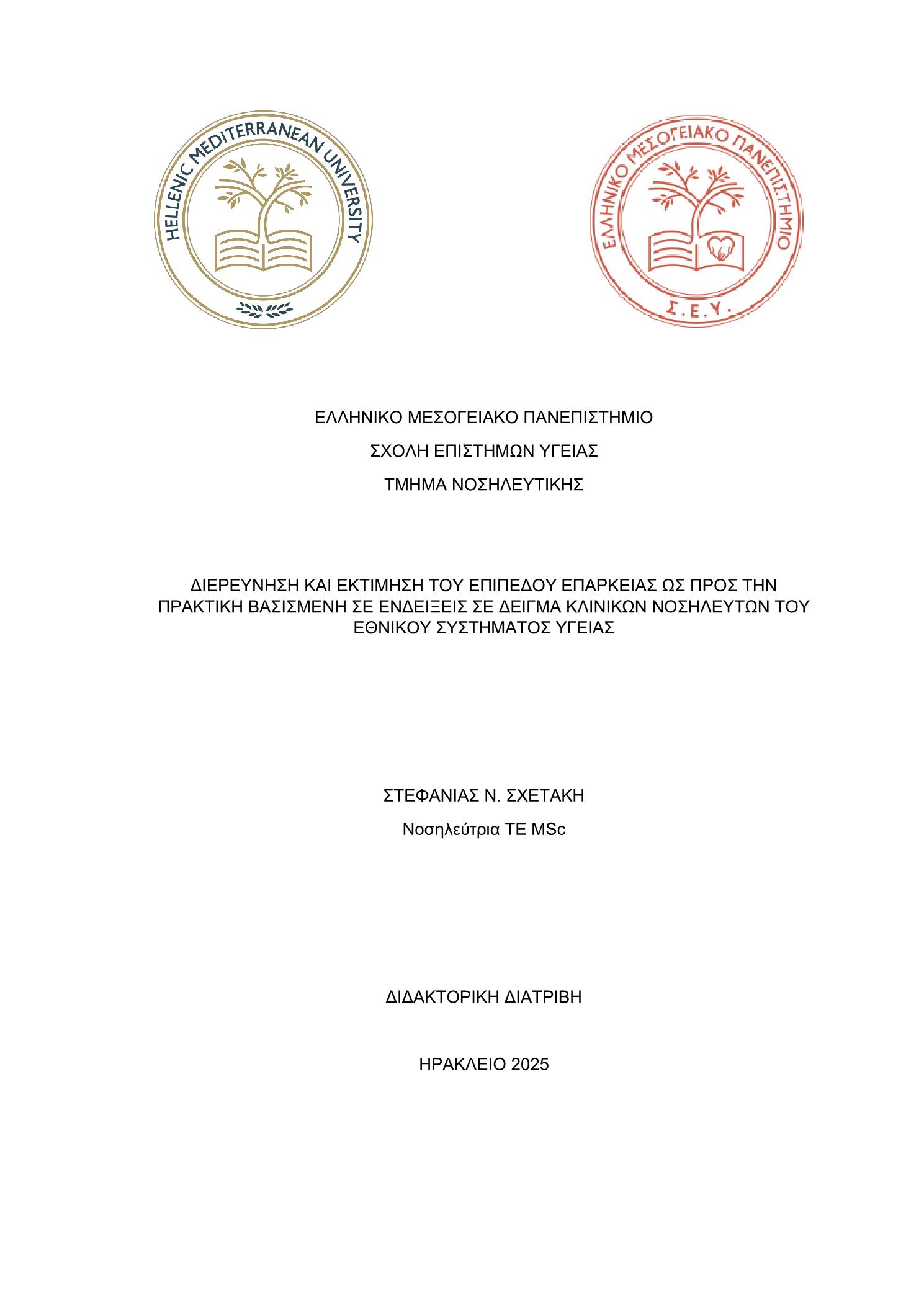 Εισαγωγή: Η υιοθέτηση της Πρακτικής Βασισμένης σε Ενδείξεις στη καθημερινή κλινική πράξη από τους νοσηλευτές είναι υψίστης σημασίας, καθώς καθορίζει και διασφαλίζει την ποιότητα παροχής φροντίδας. Σε διεθνές επίπεδο έχει διενεργηθεί πλήθος μελετών με σκοπό την κατανόηση και διερεύνηση των παραγόντων που επηρεάζουν την ΠΒΕ. Ωστόσο, παρατηρείται έλλειμμα γνώσης αναφορικά με τους παράγοντες που επηρεάζουν την επάρκεια των νοσηλευτών στο Εθνικό Σύστημα Υγείας στην Ελλάδα. Σκοπός της μελέτης είναι πρωτίστως, η διερεύνηση και η εκτίμηση του επιπέδου επάρκειας των κλινικών νοσηλευτών σχετικά με την ΠΒΕ και την εφαρμογή της στην κλινική πράξη και δευτερευόντως, η πολιτισμική προσαρμογή και στάθμιση του Ερωτηματολογίου Εκτίμησης Επάρκειας Νοσηλευτών σχετικά με τη Πρακτική Βασισμένη σε Ενδείξεις (Questionnaire to Evaluate the Professional Registered Nurses’ Competence regarding Evidence-Based Practice, EBP-COQ Prof) στην ελληνική γλώσσα. Μεθοδολογία: Διεξήχθη μελέτη μεικτού σχεδιασμού, με δείγμα κλινικών νοσηλευτών του Εθνικού Συστήματος Υγείας. Αρχικά, στο σκέλος της ποσοτικής μελέτης, διενεργήθηκε συγχρονική μελέτη, στην οποία συμμετείχαν 473 νοσηλευτές από δέκα νοσοκομεία του ΕΣΥ, έξι στην 7η Υ.ΠΕ Κρήτης, τρία 1η και ένα στην 2η Υ.ΠΕ Αττικής . Έγινε μετάφραση και πολιτισμική προσαρμογή του ερωτηματολογίου EBP-COQ Prof στην Ελληνική γλώσσα. Για τις ανάγκες τις στατιστικής ανάλυσης χρησιμοποιήθηκε στο λογισμικό STATA και για την επιβεβαιωτική παραγοντική ανάλυση το στατιστικό πακέτο SPSS 25.0. Το επίπεδο στατιστικής σημαντικότητας θεωρήθηκε το p<0.05. Έγινε διεξαγωγή ψυχομετρικών ιδιοτήτων της κλίμακας και υπολογισμός του δείκτη αξιοπιστίας Cronbach’s alpha. Εφαρμόστηκαν δοκιμασίες One-way ANOVA and Pearson coefficient ,προκειμένου να συγκριθούν οι πιθανές διαφορές μεταξύ των μεταβλητών και εφαρμόστηκε ένα πολυπαραγοντικό μοντέλο παλινδρόμησης για την διερεύνηση των χαρακτηριστικών των συμμετεχόντων. Στην ποιοτική μέθοδο, διενεργήθηκαν έξι ατομικές συνεντεύξεις και δύο ομάδες εστίασης που συμπεριελάμβανε έξι άτομα η κάθε μία. Χρησιμοποιήθηκαν ημι-δομημένες συνεντεύξεις, τα ευρήματα που προέκυψαν αναδύθηκαν μέσω της θεματικής ανάλυσης. Αποτελέσματα: Η εσωτερική συνοχή του ερωτηματολογίου ήταν αρκετά υψηλή, οι τιμές του Cronbach’s alpha κυμάνθηκαν από 0,918 έως 0,952. Μέσα από την στατιστική ανάλυση προέκυψαν τέσσερις παράγοντες, η «Στάση των νοσηλευτών για ΠΒΕ», «Οι γνώσεις των νοσηλευτών για ΠΒΕ», «Οι δεξιότητες των νοσηλευτών για ΠΒΕ» και τέλος «Η εφαρμογή της ΠΒΕ». Το τεστ Bartlett ήταν σημαντικό [χ 2 (595) = 16.483.308, p < 0,001] και ο δείκτης KMO ήταν 0,906. Η μέση τιμή των υποκλιμάκων της επάρκειας υπολογίστηκε: στάση 3,9 ± 0,6, γνώσεις 3,7 ± 0,6, δεξιότητες 3,1 ± 0,8 και εφαρμογή 3,4 ± 0,7. Μέσω της πολυμεταβλητής ανάλυσης παλινδρόμησης βρέθηκε ότι οι μεταβλητές όπως, μορφωτικό επίπεδο, η συγγραφή επιστημονικών άρθρων, η εργασία σε πανεπιστημιακή κλινική, οι δεξιότητες χειρισμού ηλεκτρονικού υπολογιστή επηρέασε θετικά τις υποκλίμακες. Μέσω της θεματικής ανάλυσης της ποιοτικής έρευνας ,προσδιορίστηκαν οι τέσσερις άξονες που χαρακτηρίζουν την επάρκεια, την στάση, την γνώση, τις δεξιότητες και την εφαρμογή. Συμπεράσματα: Η ελληνική εκδοχή του ερωτηματολογίου EBP-COQ Prof αποτελεί ένα αξιόπιστο εργαλείο για την διερεύνηση της επάρκειας των νοσηλευτών στον ελλαδικό χώρο. Οι νοσηλευτές του ΕΣΥ-παρά το γεγονός ότι υιοθετούν θετική στάση απέναντι στην ΠΒΕ-