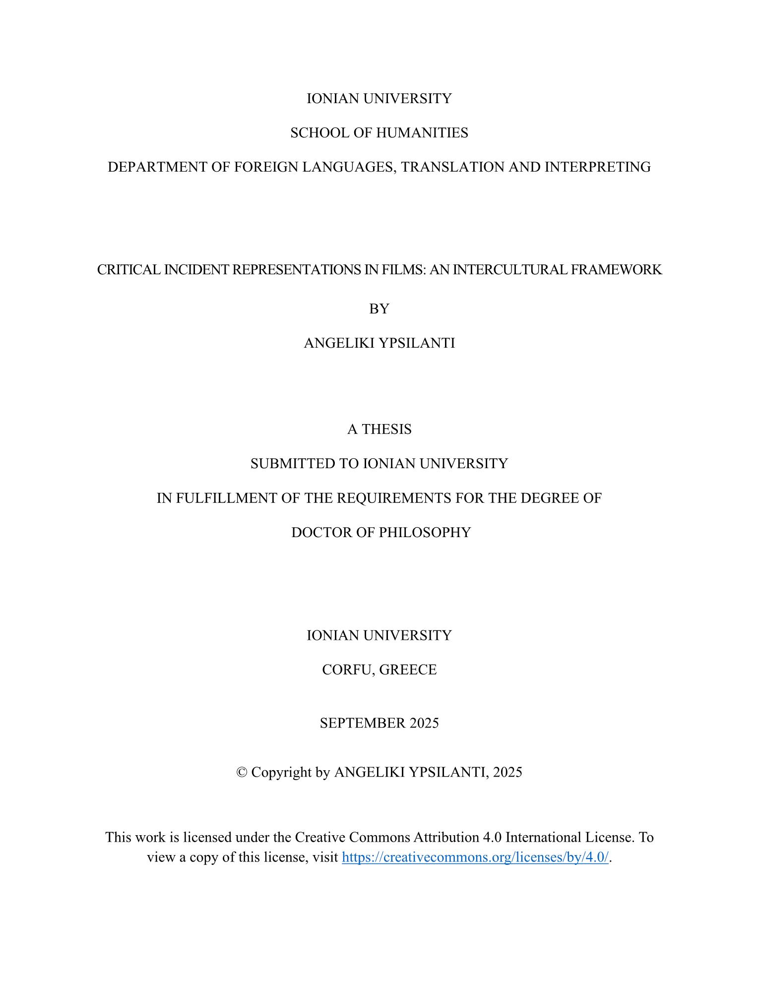 Αναπαραστάσεις κρίσιμων περιστατικών στον κινηματογράφο: ένα διαπολιτισμικό πλαίσιο ανάλυσης