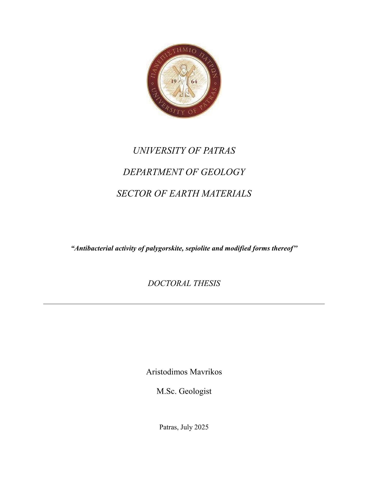 Αυτή η μελέτη διερευνά την αντιβακτηριακή αποτελεσματικότητα των φυσικών αργιλικών ορυκτών παλυγορσκίτη και σεπιόλιθου και των τροποποιημένων μορφών τους στην απομάκρυνση των Escherichia coli και Enterococcus faecalis από συνθετικά λύματα. Ο θερμικά επεξεργασμένος παλυγορσκίτης (TP) επέδειξε ανώτερες ιδιότητες προσρόφησης, που αποδίδονται στην αυξημένη επιφάνεια και το πορώδες, όπως αποκαλύφθηκε από την ανάλυση BET. Τα πειράματα σε υδατικά διαλύματα (batch πειράματα) έδειξαν καλύτερη απομάκρυνση E. coli (~69%) χρησιμοποιώντας 1g TP για 40 λεπτά ανάδευσης, ενώ τα πειράματα με στήλες πέτυχαν απόδοση απομάκρυνσης έως και 99,1% για το E. coli και 98,1% για το E. faecalis, ιδιαίτερα σε μια επιλεγμένη διάταξη στήλης. Οι δοκιμές επαναχρησιμοποίησης έδειξαν μείωση στην απόδοση προσρόφησης σε επαναλαμβανόμενους κύκλους, επισημαίνοντας τον κορεσμό και την απόφραξη των μικροπόρων ως περιοριστικούς παράγοντες. Συγκριτικά, ο παλυγορσκίτης ξεπέρασε τον σεπιόλιθο, ειδικά σε χαμηλότερες δοσολογίες, λό ...