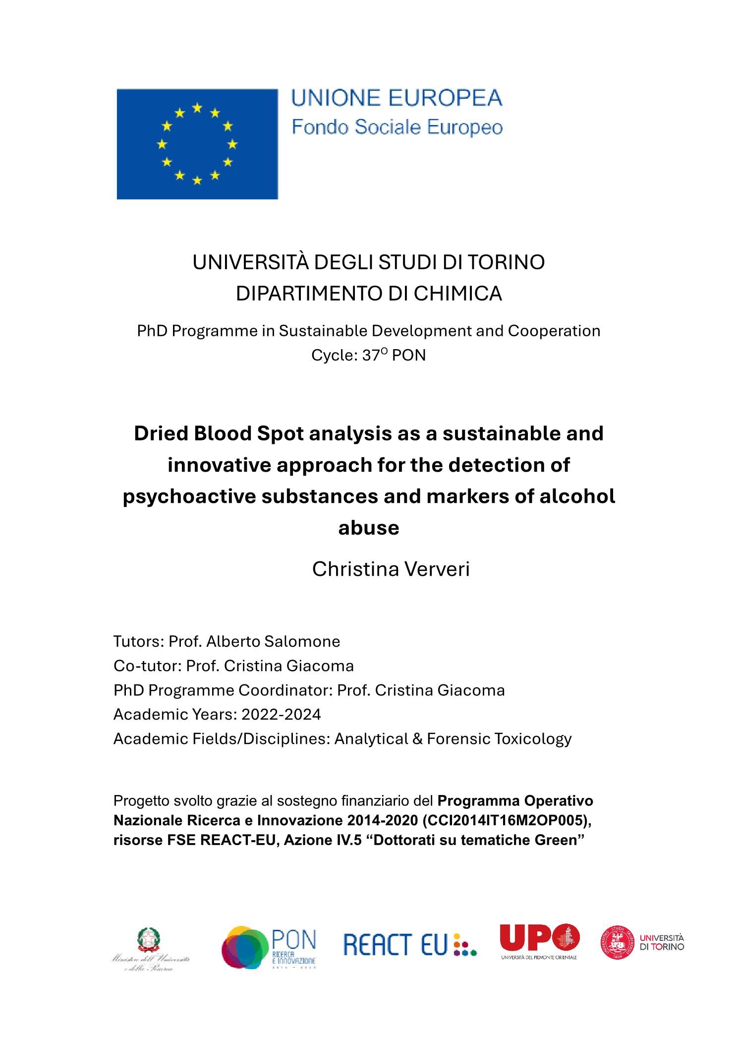 Substance abuse, including narcotic drugs and alcohol, is a major global healthissue, addressed under the United Nations Sustainable Development Goal 3 for goodhealth and well-being. Drug use has risen significantly, polydrug use is becoming morecommon while alcohol remains a leading psychoactive substance in Europe, with highconsumption levels linked to various health conditions, including liver disease,circulatory disorders, and cancer. Substances and alcohol misuse necessitates reliabletesting in clinical and forensic settings.To address these challenges, forensic science is turning to Dried Blood Spot(DBS) sampling—a minimally invasive, efficient, and eco-friendly method. This researchwork has as priority to develop DBS methods to contribute significantly to the dailyroutine workflow of forensic laboratories, taking into consideration the needs ofscientists, laboratory personal and their applicability to different stakeholders whentesting for workplace and roadside alcohol and drug ...