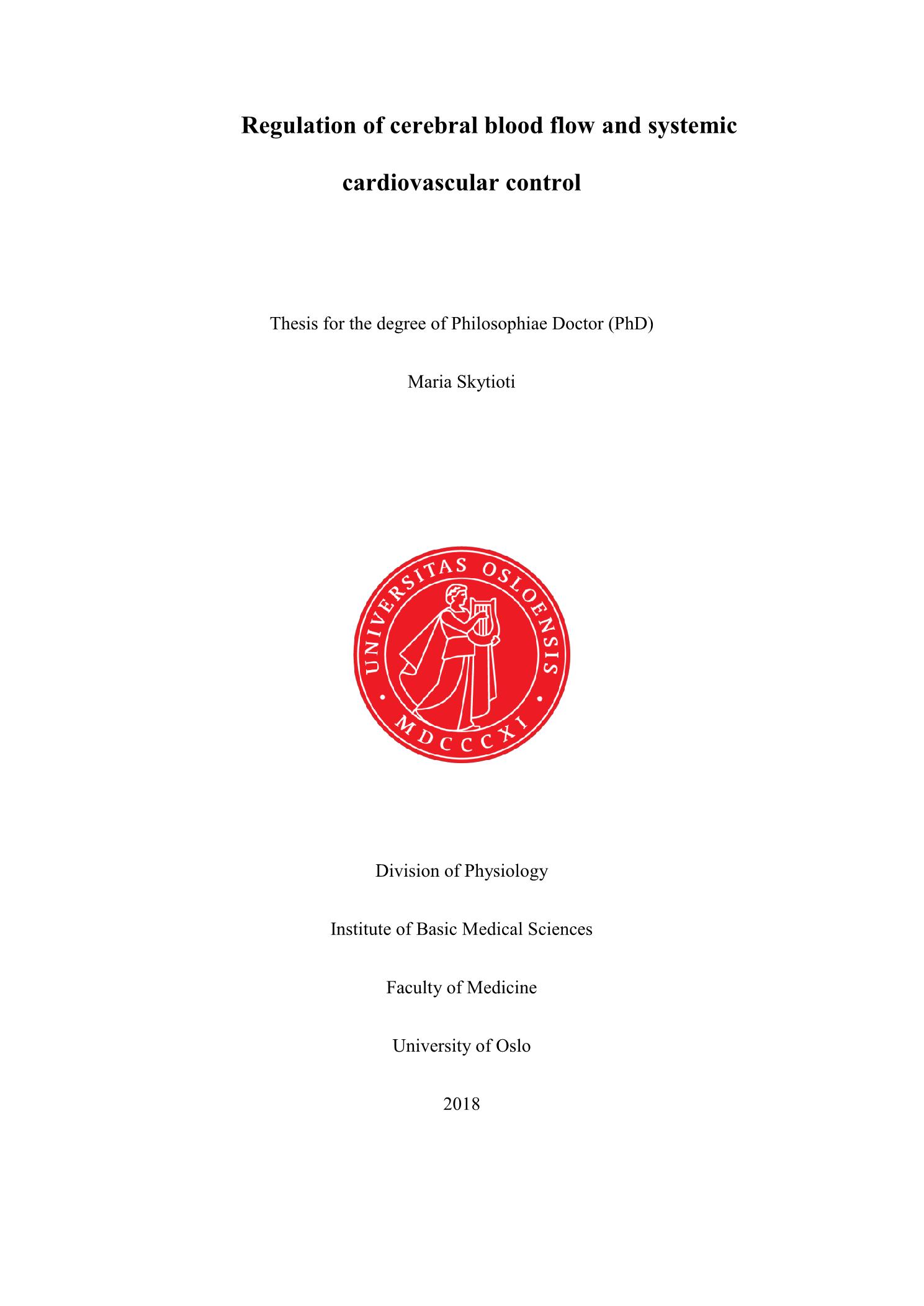 Cerebral blood flow (CBF) is regulated by several overlapping mechanisms to ensure adequate nutrient and oxygen supply to the brain. Cerebral metabolism, arterial partial pressure of carbon dioxide (PaCO2) and mean arterial blood pressure (MAP) are important regulators. In the clinical setting, changes in cerebral perfusion may result in brain damage. We assessed CBF response to hypovolemia (lower body negative pressure, LBNP) and positive pressure ventilation (PPV); the role of the respiratory sinus arrhythmia in CBF regulation; CBF response and dynamic cerebral autoregulation during isometric handgrip and head-down tilt; CBF changes during laparoscopic surgery and pneumoperitoneum. Healthy volunteers and day-surgery patients were recruited. Blood velocity in the internal carotid artery (ICA) and cardiorespiratory variables were recorded. The ICA diameter was used to calculate ICA blood flow. Non-parametric statistics, mixed-models and frequency analyses (transfer function and wavelet ...